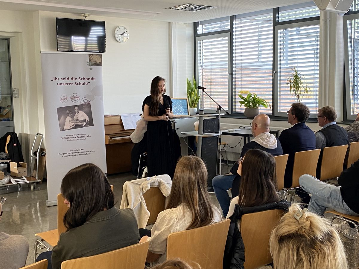 Musikalisch begleitet wurde die Veranstaltung von Schülerinnen der Fachschule für Sozialwesen. Besonders beeindruckte der engagierte Einsatz der Klasse FSS24B unter Klassenleitung von Herrn Björn Rothenpieler, deren Schülerinnen und Schüler die Besucherinnen und Besuchern die Inhalte der Ausstellungstafeln erläuterten.