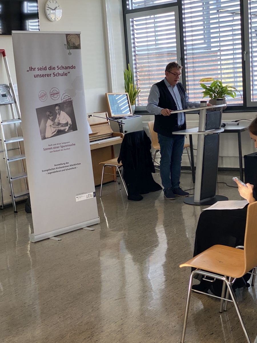 Mit einer bewegenden Eröffnungsveranstaltung wurde an der Berufsbildenden Schule Wissen die Ausstellung „Ihr seid die Schande unserer Schule. Ruth und Artur Seligmann. Szenen einer Spurensuche von Rosbach bis Stutthof“ eröffnet. Auf 20 Tafeln zeichnet die vom Evangelischen Kirchenkreis Altenkirchen konzipierte Ausstellung das Schicksal der jüdischen Geschwister Ruth und Artur Seligmann nach, die aus einer angesehenen Familie in Rosbach an der Sieg stammten. Ihr Leben wurde nach 1933 durch die nationalsozialistische Verfolgung zerstört.