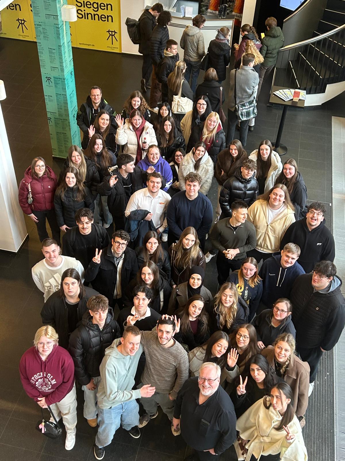 Am Mittwoch, 28. Januar 2025, haben die Schülerinnen und Schüler der 12. und 13. Klasse des Beruflichen Gymnasiums (BGYW24 und BGYW23) gemeinsam mit ihren Englisch-Lehrkräften Frau Claudia Collé, Herrn Christian Lück, Herrn Christian Tost und Herrn Bernd Woelki das Apollo-Theater in Siegen besucht, um eine Inszenierung des Theaterstücks "Kindertransport" von Diane Samuels zu schauen. Thema des Bühnenstücks war die Ausreise von über 10.000 jüdischen Kindern nach Erlass der Nürnberger Gesetze aus dem Deutschen Reich in den Jahren 1938 und 1939. Die Darbietung der Frankfurt Theatre Group in englischer Sprache war für alle Teilnehmerinnen und Teilnehmer ein spannendes und zugleich bewegendes Erlebnis.