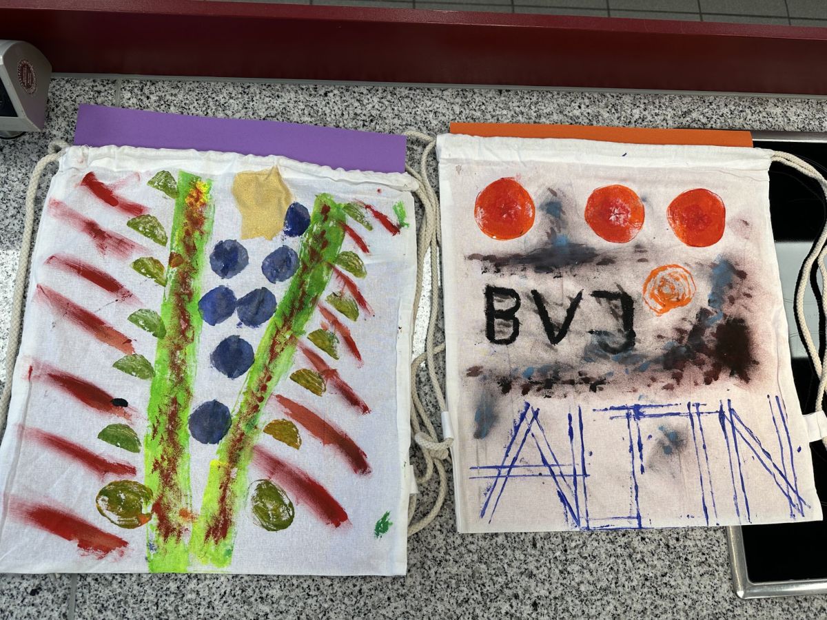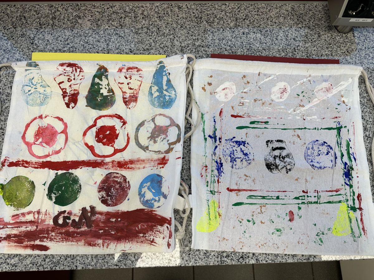Der hauswirtschaftliche Bereich zeichnet sich durch eine große Vielfalt an Aufgabenfeldern aus – von organisatorischen und praktischen Tätigkeiten bis hin zu kreativen Arbeitsprozessen. Die Lernenden der Klasse BVJ25E hatten kürzlich, im fachpraktischem Unterricht bei Frau Wittwer, die Möglichkeit, im Rahmen einer kreativen Unterrichtseinheit eigene Turnbeutel mit Obst- und Gemüsedruck zu gestalten. Diese kreative Methode förderte nicht nur gestalterische Kompetenzen, sondern zeigte auch eine sinnvolle Verwertung von nicht mehr essbarem Obst und Gemüse auf. Die Lernenden arbeiteten dabei konzentriert, engagiert und mit großer Offenheit. Am Ende entstanden zahlreiche individuell gestaltete, bunte Alltagsbegleiter, die die Vielfalt und Kreativität der Gruppe widerspiegeln.