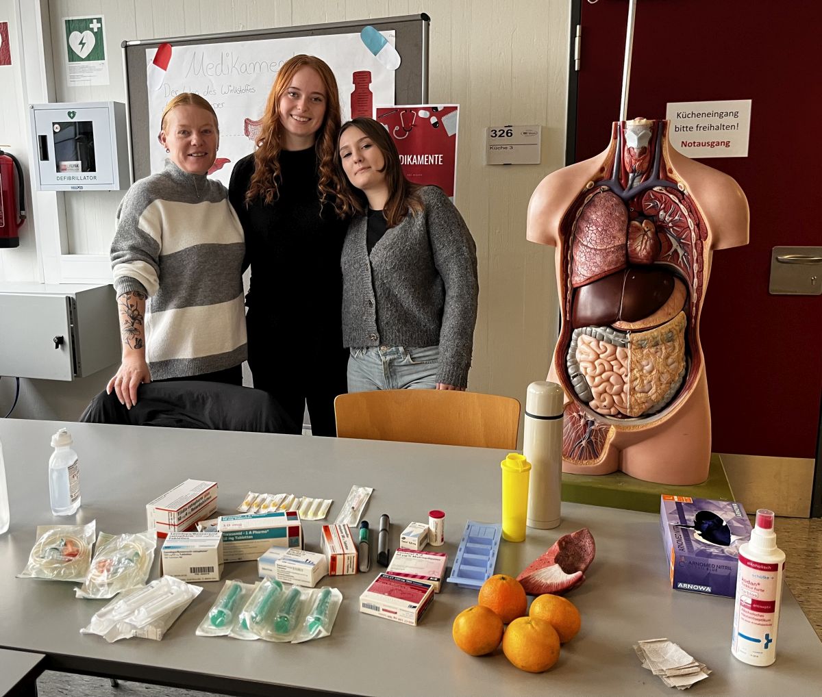 Im Bereich der Ersten Hilfe standen grundlegende lebensrettende Maßnahmen wie Reanimation und Beatmung im Mittelpunkt. Besonders viel Aufmerksamkeit zog erneut der Themenkomplex Medikamente auf sich. Verschiedene Darreichungsformen – von Tabletten über Infusionen bis hin zu Injektionen – wurden anschaulich vorgestellt. Ein Highlight war für viele die Möglichkeit, unter Anleitung der angehenden Pflegefachpersonen selbst Spritzen zu setzen. Mit großem Fachwissen und spürbarer Begeisterung begleiteten unsere Auszubildenden die Gäste durch diesen vielseitigen und informativen Tag.