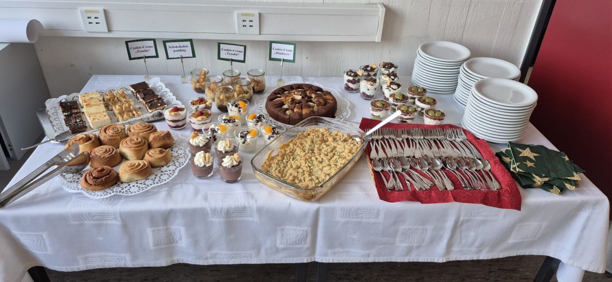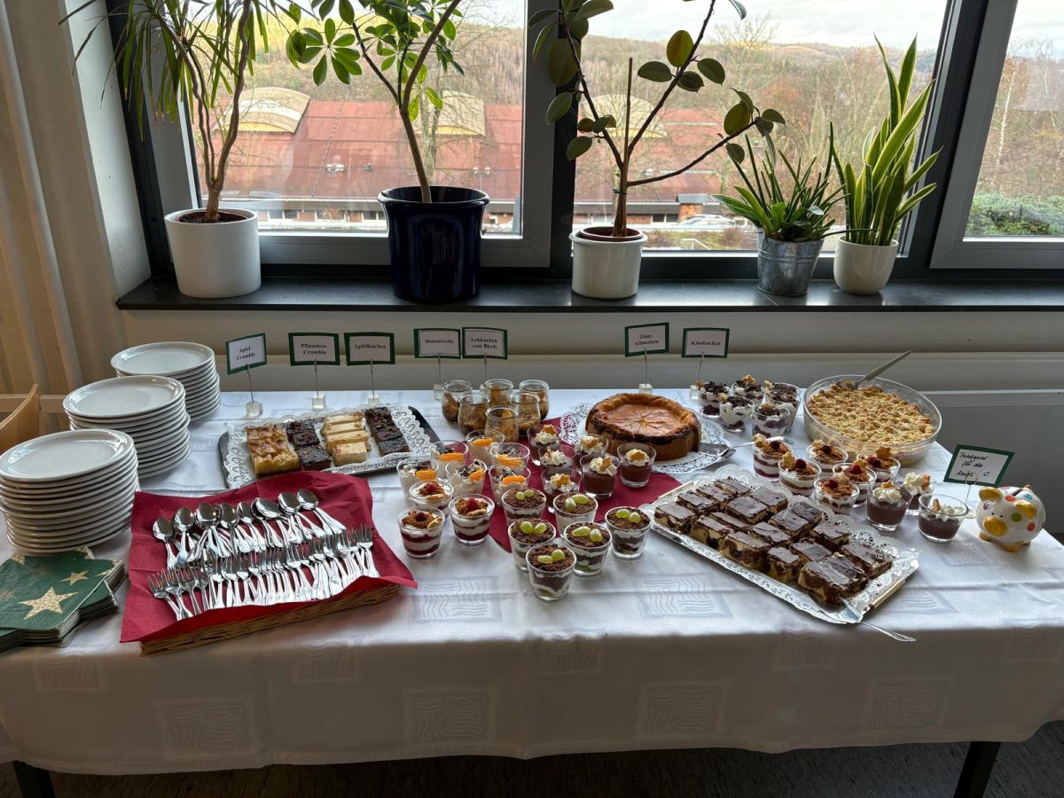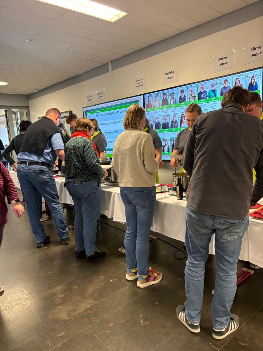 Auch dieses Mal möchten wir uns herzlich bei allen Schülerinnen und Schülern der Berufsschulklassen BSFPSE24+ und BSFPSE25 (Fachpraktiker/-in Service und Fachpraktiker/-in Hauswirtschaft) sowie den betreuenden Lehrkräften Frau Gertrud Breuer, Frau Jennifer Grigoli, Frau Sabine Seifer und Frau Christiane Stinner für das großartige Catering bedanken. Serviert wurden verschiedene Suppen, unter denen das Kollegium sowie Mitarbeiterinnen und Mitarbeiter auswählen konnten: Käse-Lauch-, Kartoffel-, Brokkoli-, Kürbis- und orientalische Linsensuppe. Außerdem gab es Chili sin carne, dazu Baguette und selbst gebackenes Brot. Zum Nachtisch wurden drei unterschiedliche Schichtdesserts, Schokopudding mit Sahnehaube, Apfel- und Pflaumencrumble sowie eine bunte Auswahl an Kuchen angeboten. Alle Speisen überzeugten durch ihre hervorragende Qualität und ihren delikaten Geschmack. Vielen Dank für dieses besondere Genusserlebnis!